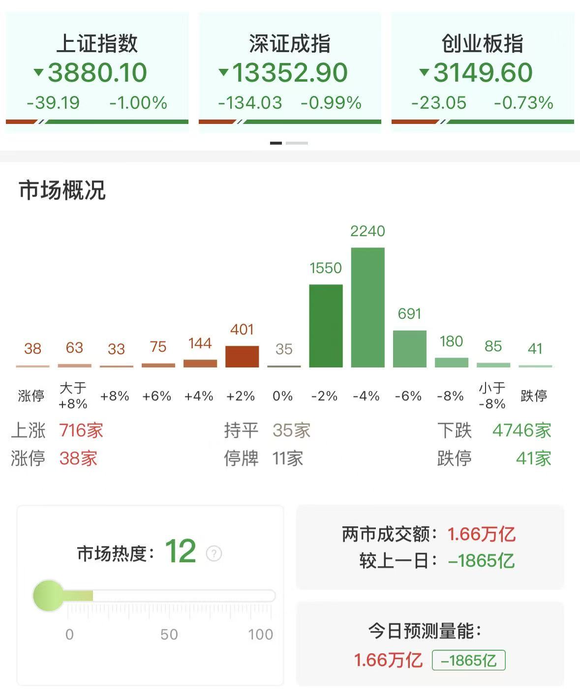 今日市场全天震荡走低,三大指数全线收绿,其中沪指再度跌破3900点。另一方面,两市量能进一步萎缩,已不足1.7万亿。故短线来看市场依旧维持震荡走低弱势整理结构之中。不过在连续两日超4300股下跌后,短线情绪或趋于冰点,短线存在一定修复预期,届时指数能否重新带量站上5日线或可视为判断短线是否止跌企稳的关键。从市场角度来看,算力硬件方向成为今日核心热点,或意味着短线风险偏好较低的背景下,资金开始更为聚焦产业景气度炒作,若资金正反馈能够延续,则可围绕年报与一季报的披露选择成长性较佳的优质标的寻找布局机会。