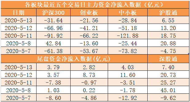 沪深300今日主力资金净流出31.64亿元,创业板净流出21.56亿元,中小板净流出28.84亿元。沪股通净流入6.55亿元,深股通净流入7.4亿元(本文中沪股通、深股通净流入额以当日已用额度来计,与成交净买入额略有差异,但表示的意义大体一致)。