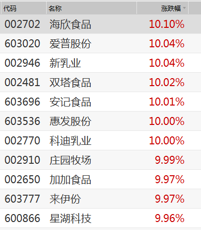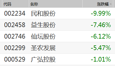 鸡肉股也纷纷走弱,民和股份跌停,益生股份、仙坛股份、圣农发展等大跌。