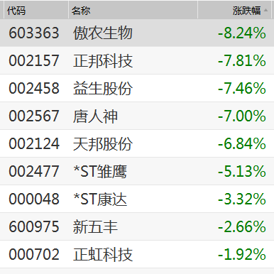 猪肉股则应声大跌,傲农生物跌逾8%,正邦科技、益生股份、唐人神等跌逾7%。