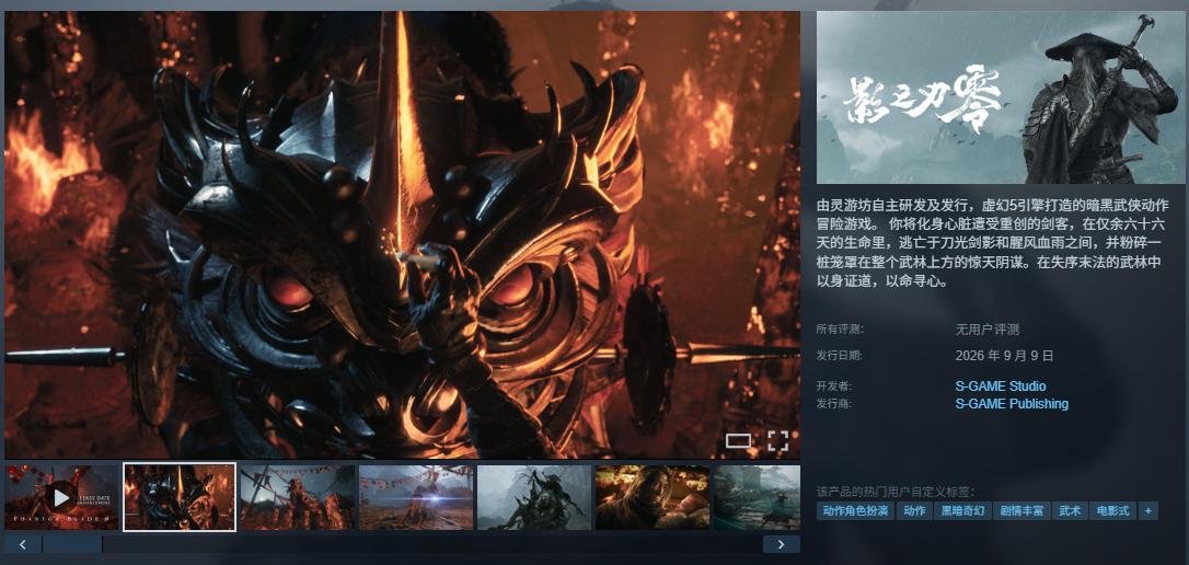 截至目前,《影之刃零》商店页已在Steam、Epic等平台同步上线。根据商店页面,该作品系由虚幻5引擎打造的暗黑武侠动作冒险游戏。据官方描述,玩家将在游戏中扮演一名“心脏遭受重创的剑客”,在生命仅存的时间里迎战各类敌人。