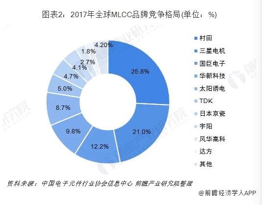 村田是全球第一大MLCC生产商,其占全球的市场份额超过25%。总体来看,村田、三星、国巨、华新科、太诱占据全市场近80%的份额。