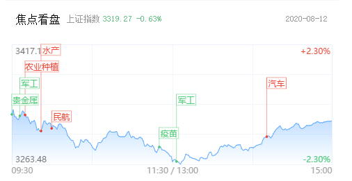 8月12日,指数早盘单边下行,午后企稳回升跌幅收窄,个股跌多涨少,涨停个股近50家,较早盘市场氛围有所回暖。板块上,机场航运板块全天强势,农业、海南、农业、汽配、Mini LED等板块盘中轮番走强。整体看,市场资金承接力尚可,指数短期继续往下的空间并不大,个股整体仍处于高低位切换状态。