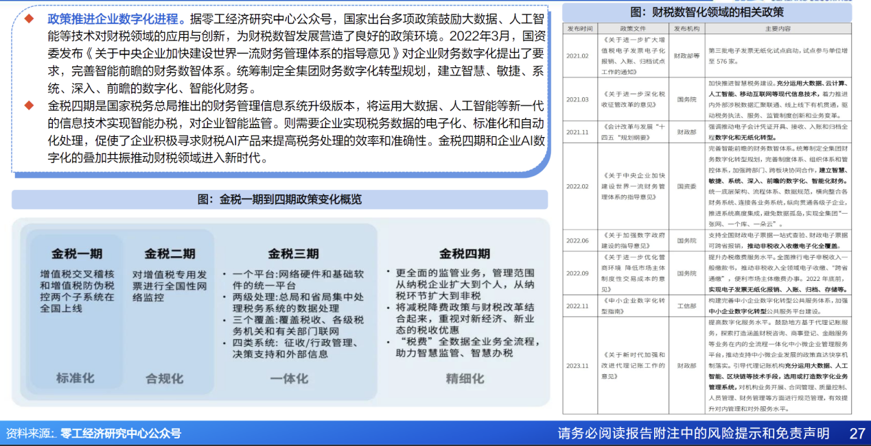 政策:金税一到四期向精细化演变,对企业财务提高要求