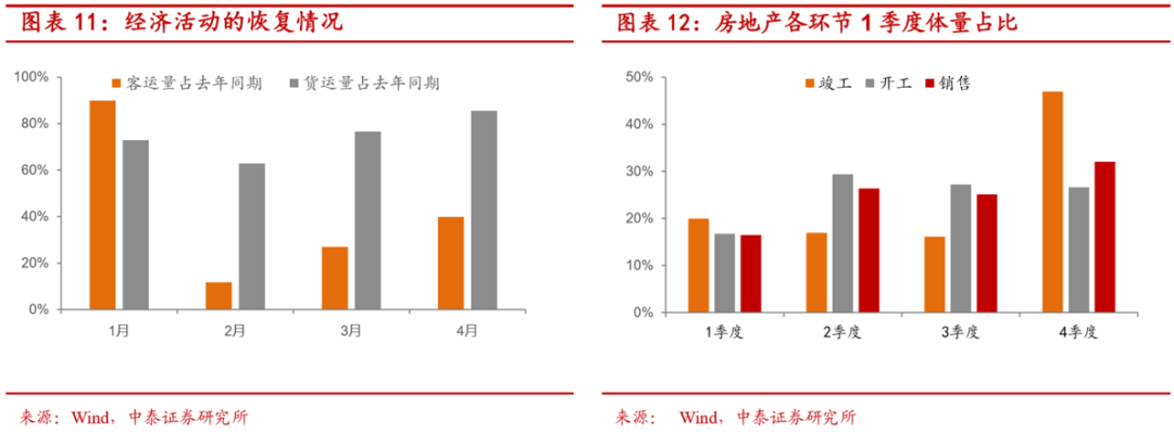 疫情影响时长:工期延后意味着本轮竣工高点可能延迟一个季度出现。作为用工大户,疫情高峰期的隔离与限产对地产行业产生了不小的冲击。无论是从客流量还是迁徙指数来看,疫情对正常生产造成的时滞可能至少在一个季度。从全年的竣工节奏看,历史上一季度竣工面积在全年的占比达到20%,明显高于新开工、销售的情况。这也就意味着即使二季度开始赶工,那么一季度停工的损失也会造成竣工高点的延迟。目前从各项高频指标看,6月多数生产活动基本恢复正常,如果全年没有出现疫情超预期反复的情况,按照前文的预测,今年二、三季度的竣工高峰有望在三、四季度出现。