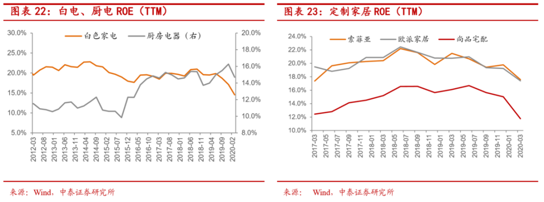 盈利优势的行业:我们建议关注白电、厨电、定制家具、小家电。在估值水平相差不大的情况下,盈利水平的高低决定了股价的增长潜力,而在经济下行的环境中,我们建议关注历史盈利稳健、销售大幅回暖、流动性优势明显的白电、厨电、小家电,以及受益于精装修红利、渗透率逐年增加的定制家具。