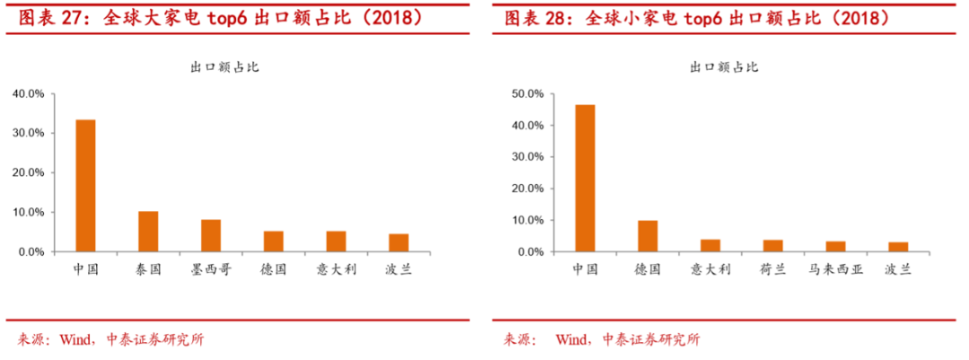 关注出口订单下滑对上市公司业绩的影响。中国是全球重要的家电出口大国。根据联合国数据分析,目前中国家电产品在全球家电出口市场份额保持在37%左右,其中大家电约31%,小家电在46%以上。而今年随着海外疫情的发酵很多重要的展会已经取消或推迟,企业赴海外参展也受到了一定程度的影响,这些都会给企业展示新品、获得新订单造成一定的影响。此外,如若疫情出现反复,全球经济下行抑制消费需求的复苏节奏,也会进一步影响企业的新增订单。