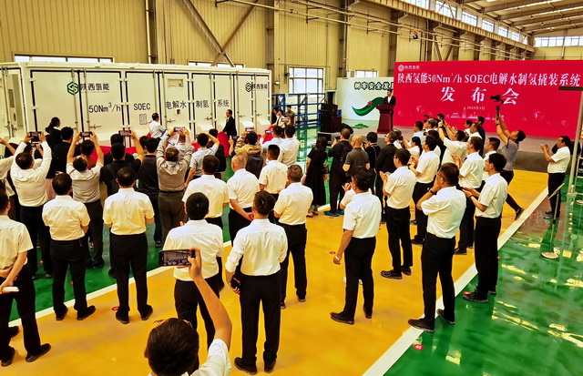 5月20日,在陕西榆林举行的高温电解水制氢撬装系统新闻发布会现场。摄影/章轲