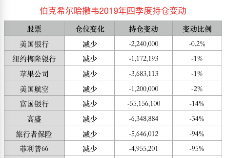 巴菲特的其他减持主要集中在金融股,包括美国银行、纽约梅隆银行、富国银行、高盛4只银行股和旅行者保险。