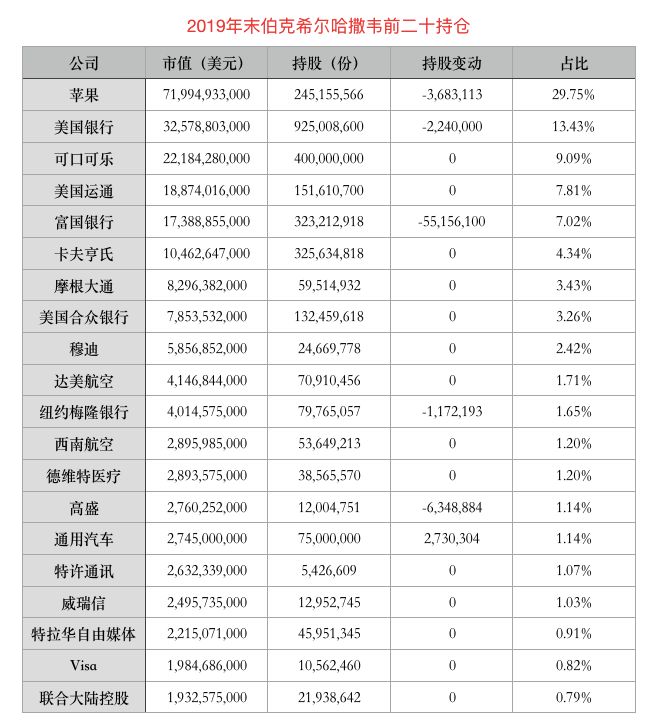 近日,伯克希尔哈撒韦向美国证监会披露了13F文件,巴菲特2019年末的持仓情况也随之浮出水面。整体来看,其看重消费(巴菲特视苹果为消费类公司)、金融、航空股的基本逻辑没有发生变化。