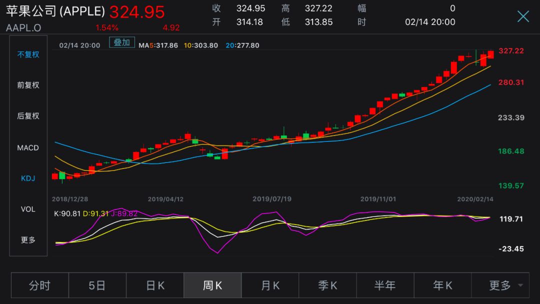 2019年,苹果公司的股价一路飙升,不断创出新高,年内涨幅近90%。