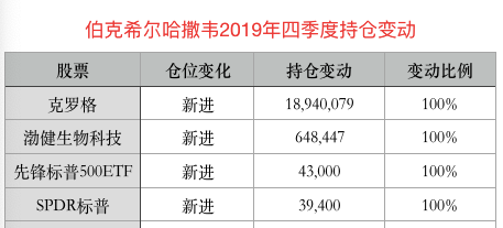 巴菲特旗下伯克希尔哈撒韦公司在2019年四季度新进了2只股票:美国超市巨头克罗格(Kroger)和美国生物科技公司生物基因(Biogen)。