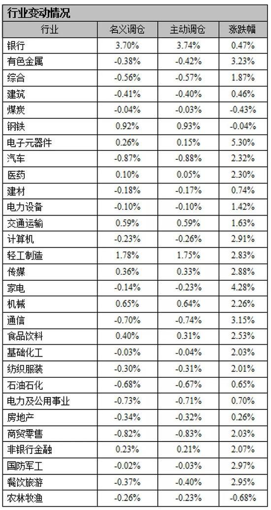 从上周基金加仓情况来看,银行、轻工制造、钢铁最受青睐,仓位分别提高了3.70个百分点、1.78个百分点和0.92个百分点。