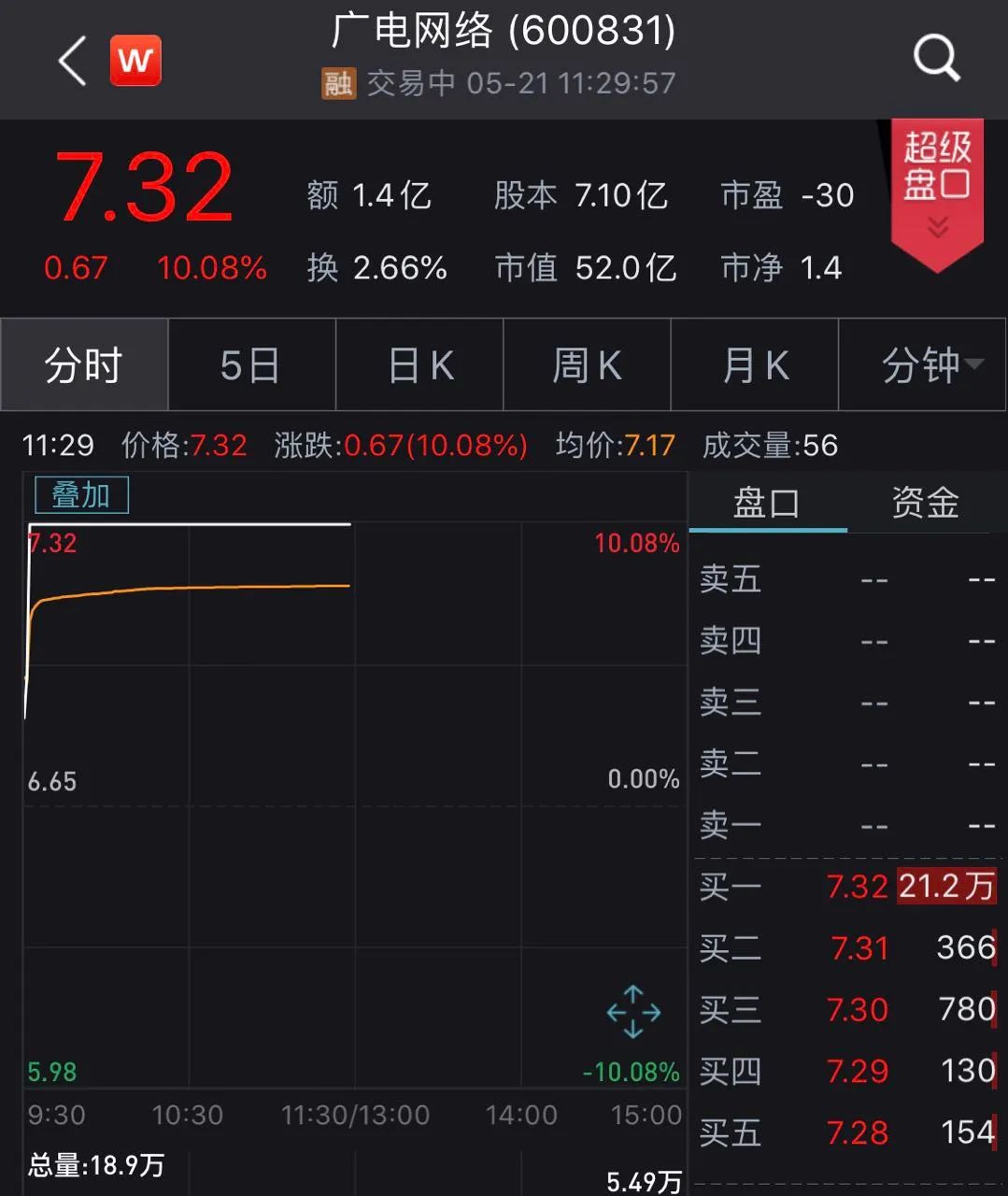 广电系则表现强势,21日开盘后,广电网络拉升至涨停,贵广网络、湖北广电、广西广电、电广传媒等跟涨。消息面上,中国移动与中国广电签署5G合作协议。