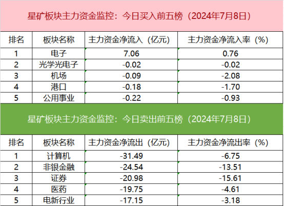 板块资金流出方面,计算机板块主力资金净流出居首。