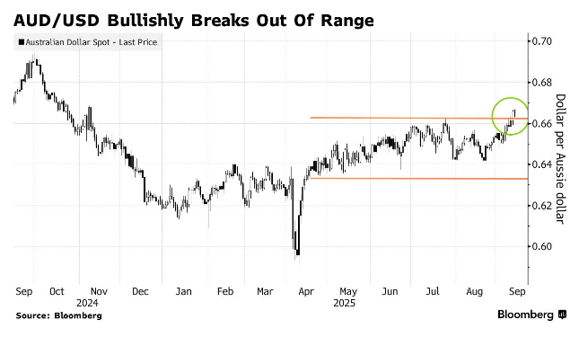 澳元是9月表现第二好的主要货币,仅次于挪威克朗。宏观基金押注,在多重因素推动下,澳元的优异表现将在未来数周延续,这些因素包括:澳大利亚国内家庭支出保持韧性、经济增长超出预期、大宗商品价格上涨,以及澳洲联储释放的鹰派信号。该行行长米歇尔・布洛克本月早些时候曾表示,强劲的消费需求可能会限制降息空间。