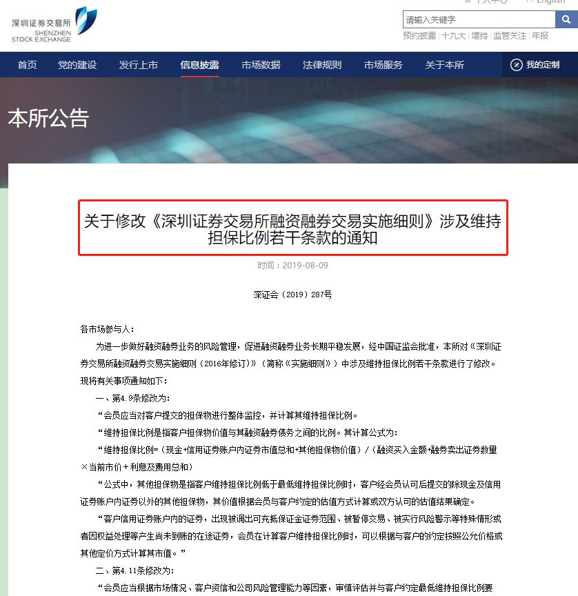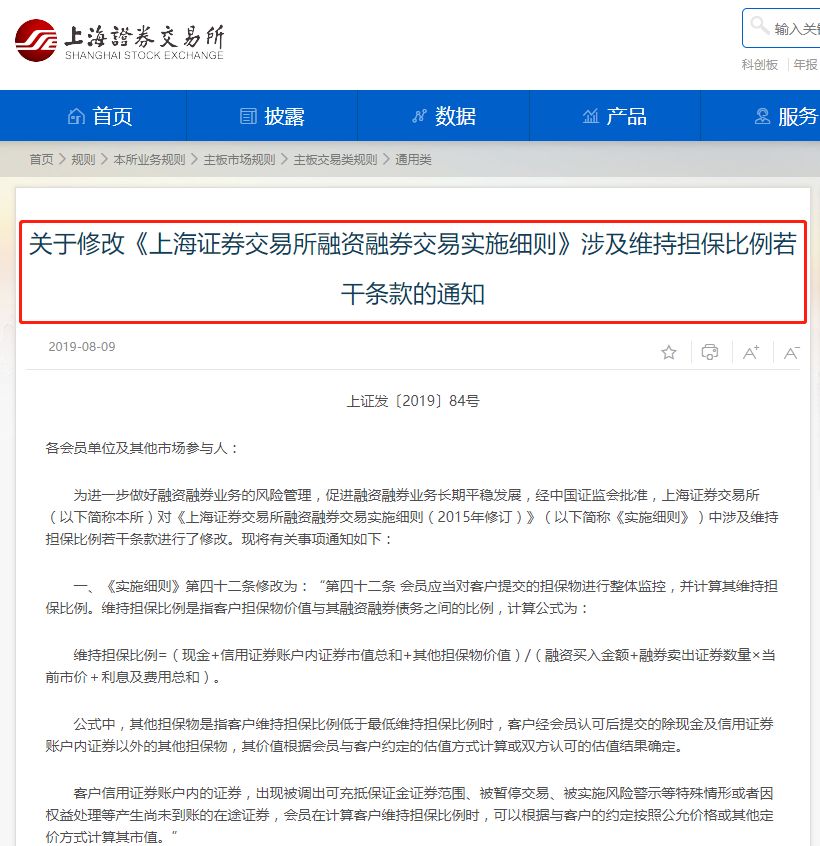 昨日,沪深交易所也同步发布了关于修改“融资融券交易实施细则”涉及维持担保比例若干条款的通知。