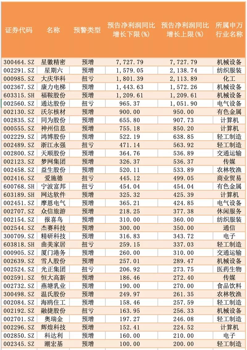 具体到个股看,星徽精密目前暂夺“预增王”,预计净利润增幅最高。