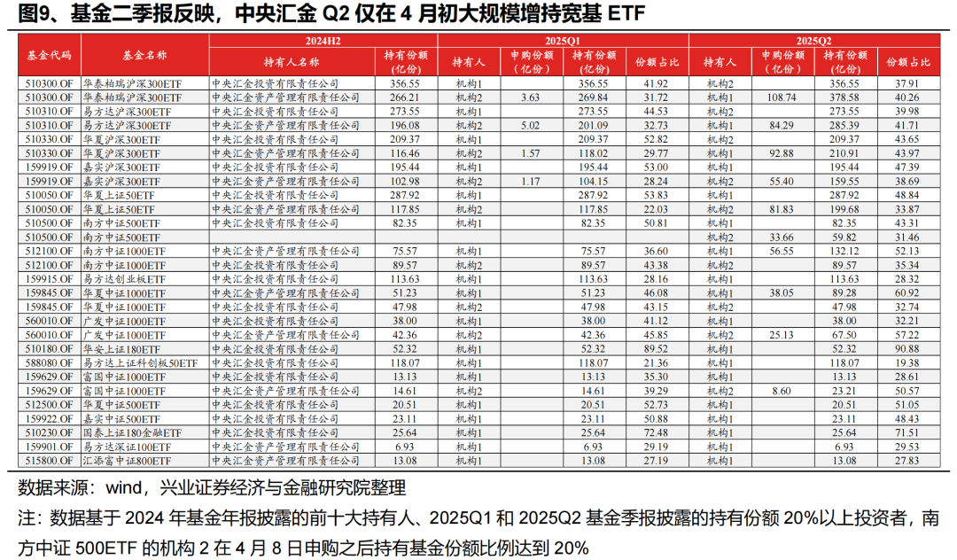 基金二季报反映,中央汇金仅在4月初大规模增持宽基ETF,4月下旬以后国家队并未再增减持ETF,指数持续上行修复的韧性为市场自发驱动。按照基金二季报中的汇金投资与汇金资管增持ETF份额,以及4月7日净值,估算在二季度国家队增持ETF金额为1920亿元,而ETF在4月7日、8日、16日的净流入总规模为1937亿元,两者基本可以相互印证。