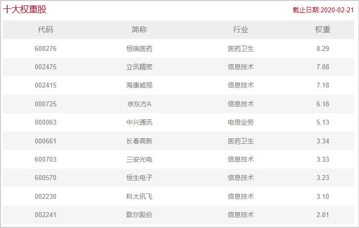 据券商中国记者了解,该基金跟踪的指数为中证科技龙头指数,该指数由沪深两市中电子、计算机、通信、生物科技等科技领域中规模大、市占率高、成长能力强、研发投入高的50只龙头公司股票组成。下图为该指数的前十大权重股。其中,中兴通讯、三安光电等股票均于年初至今录得超过40%的涨幅。