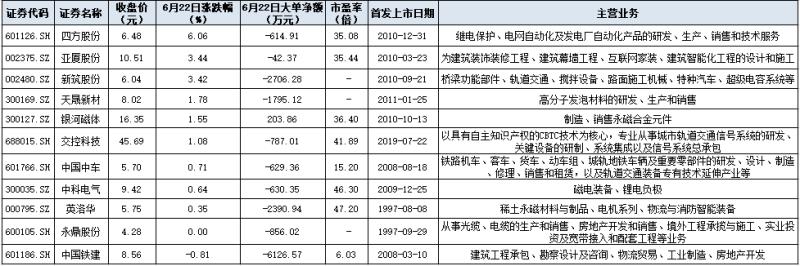 《证券日报》记者根据券商研报及上市公司相关业务等情况不完全统计,与磁浮列车相关的上市公司超过10家,6月22日,在沪深两市股指涨跌互现震荡盘整之际,共有9只概念股实现不同程度的上涨,其中,四方股份涨幅居首,达到6.06%,亚厦股份紧随其后,涨幅为3.44%,此外,新筑股份涨幅也在3%以上,达到3.42%,其他实现上涨的概念股还有,天晟新材、银河磁体、交控科技、中国中车、中科电气、英洛华。