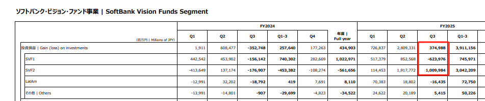 周四(2月12日),日本软银集团发布了2025财年第三财季(2025日历年第四季度)业绩报告,受益于对OpenAI投资估值的上升,公司连续第四个季度实现盈利。