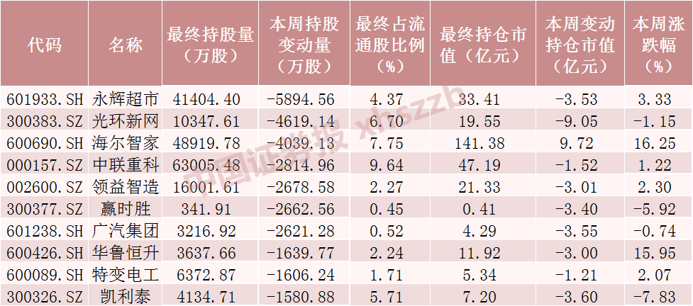 在北向资金本周净流入超210亿元的情况下,仍有不少个股遭遇北向资金减仓。Choice数据显示,本周北向资金共计减仓576只个股,对其中27只个股的减仓股数超过1000万股。减仓股数最多的永辉超市被减仓5894.56万股,此外光环新网、海尔智家被分别减仓4619.14万股、4039.13万股。