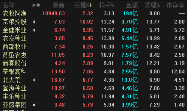 农产品价格的上涨,推动了今日农业股的逆市拉升,截至午间收盘,种业板块指数大涨5.62,盘中一度上涨7.62%,创出该指数推出以来的历史新高,半日成交接近上周五全天成交。农业股的上涨也激发了人造肉概念股的重新活跃,板块指数今日逆市大涨3.56%,离历史最高点也只一步之遥。