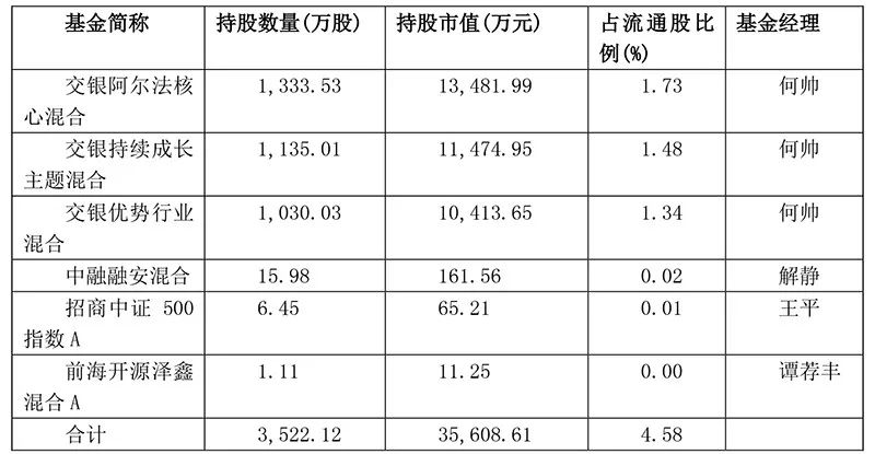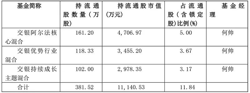 值得注意的是,截至2019年三季度末,何帅管理的上述三只基金合计规模高达106亿元。此外多只个股中,三只基金的合计持股数占总股份的比例超过5%,不排除四季度有进一步增持的可能。