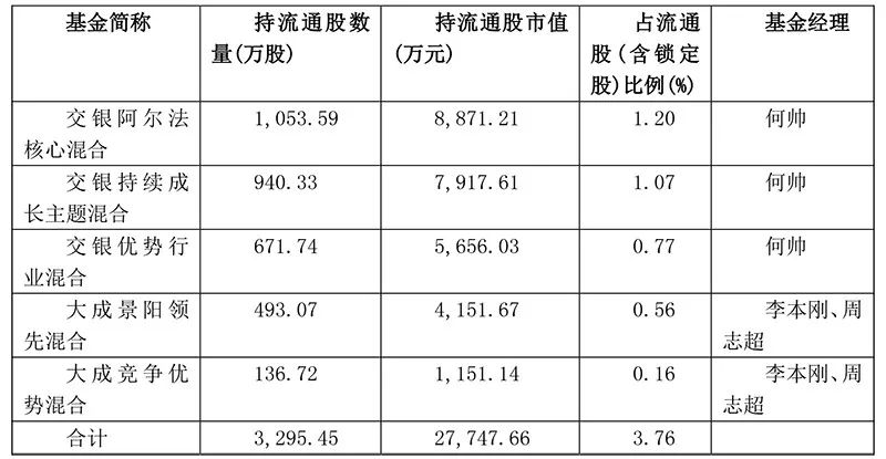 永太科技基金持有情况 数据来源:东方财富Choice数据