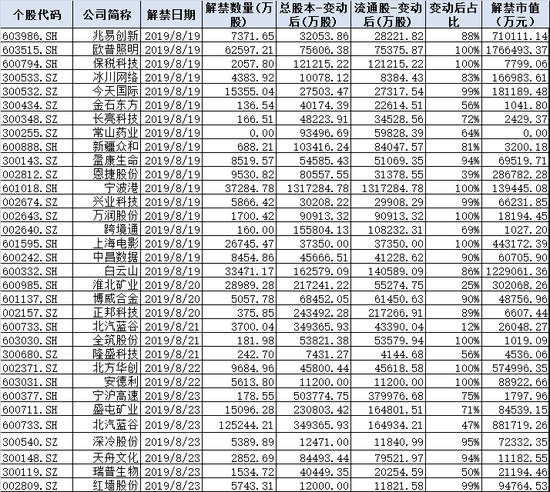 下周解禁股一览