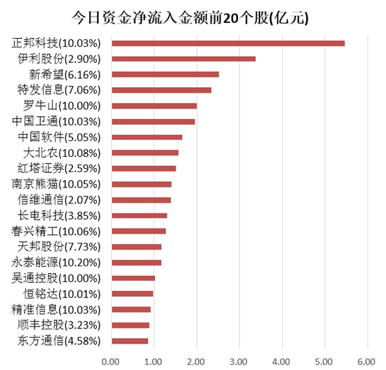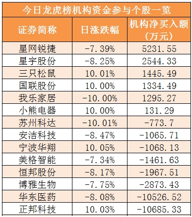 盘后龙虎榜数据显示,机构现身14股,其中星网锐捷(24.950, -1.99,-7.39%)等6股呈现机构资金净买入,正邦科技等8股呈现机构资金净卖出。