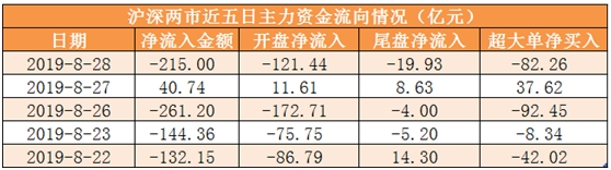 今日沪深两市主力资金开盘净流出121.44亿元,尾盘净流出19.93亿元,两市全天资金净流出215亿元。