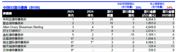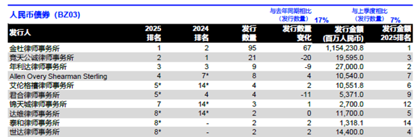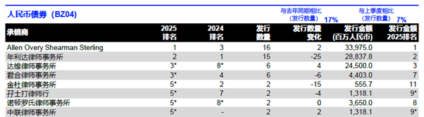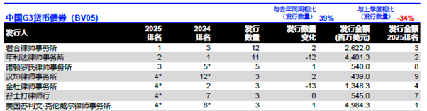 发行人法律顾问:金杜律师事务所领跑人民币债券业务榜单,君合律师事务所位居中国G3货币债券业务榜单榜首。