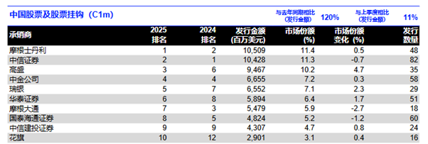 2025年前三季度,摩根士丹利在中国股票和股票挂钩承销商榜单中居于首位。