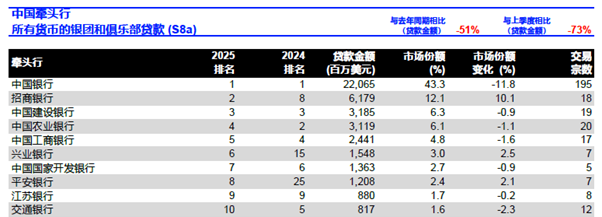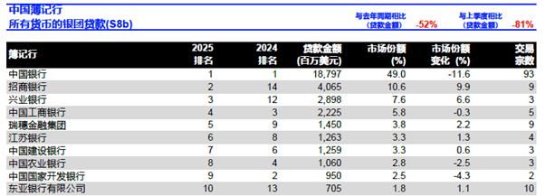 中国银行同时领跑中国牵头行所有货币的银团和俱乐部贷款榜单及中国簿记行所有货币的贷款榜单。