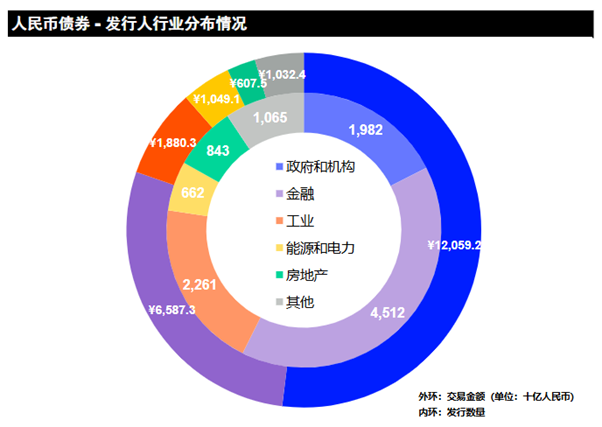 2025年前三季度政府和机构的债券发行额以约12.1万亿人民币,占据52%市场份额,比去年同比增长32%,三季度环比二季度增长4%。位列之后的分别是金融,工业,能源和电力以及房地产行业。