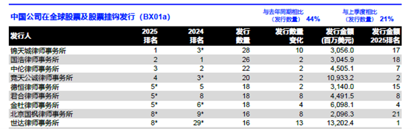 从交易数量排名上看,锦天城律师事务所在中国股票和股票挂钩发行人法律顾问榜单位列首位。