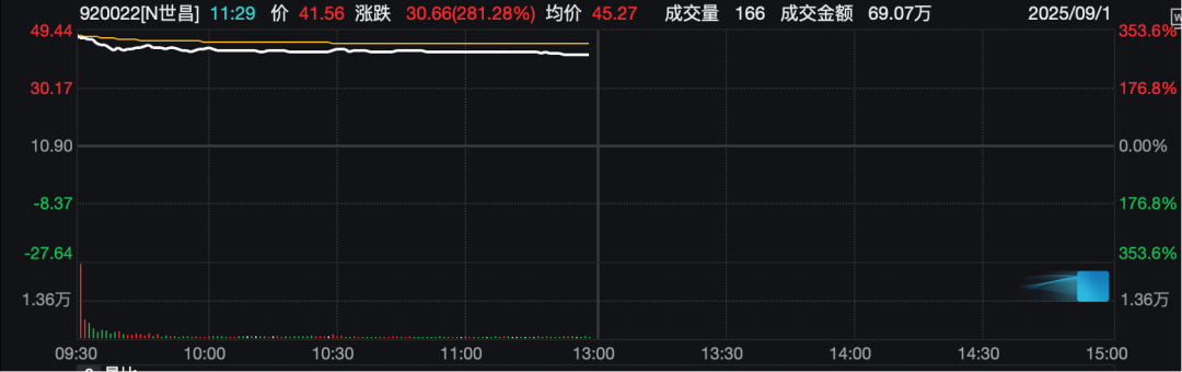 今天A股市场有一只新股上市,为世昌股份,盘中涨幅一度达353.58%。