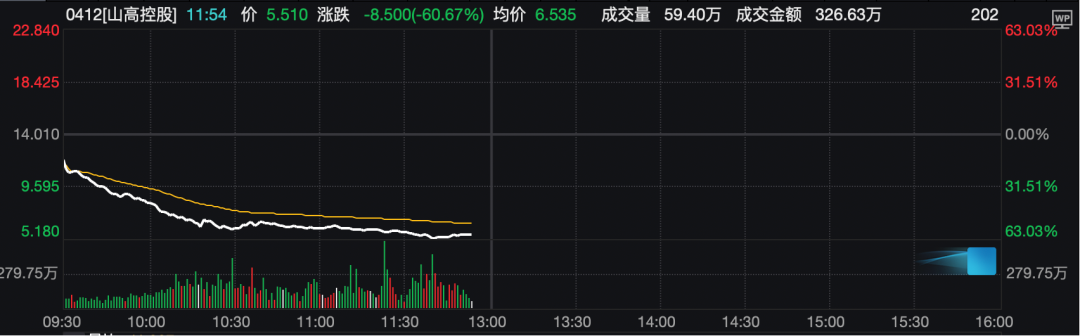 其他大幅波动的个股方面,山高控股重挫,盘中跌幅一度超过60%。消息面上,香港证监会此前点名公司“股权高度集中”。