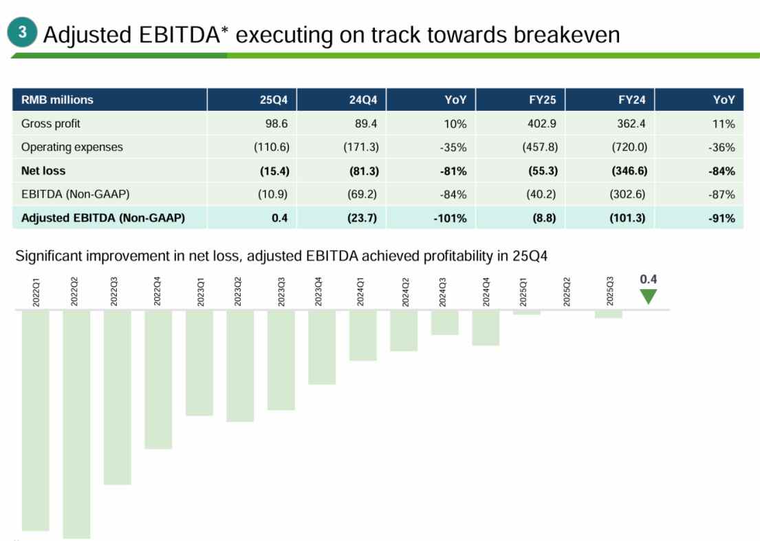 而在25Q4季度,燃石医学值得关注的便是其经调整后的EBITDA(息税折旧及摊销前利润)首次转正,单季度盈利37万元;且经营现金净流入2304万元人民币,连续2个季度现金流转正。截至2025年12月31日,公司现金、现金等价物和受限制现金为4.81亿元。