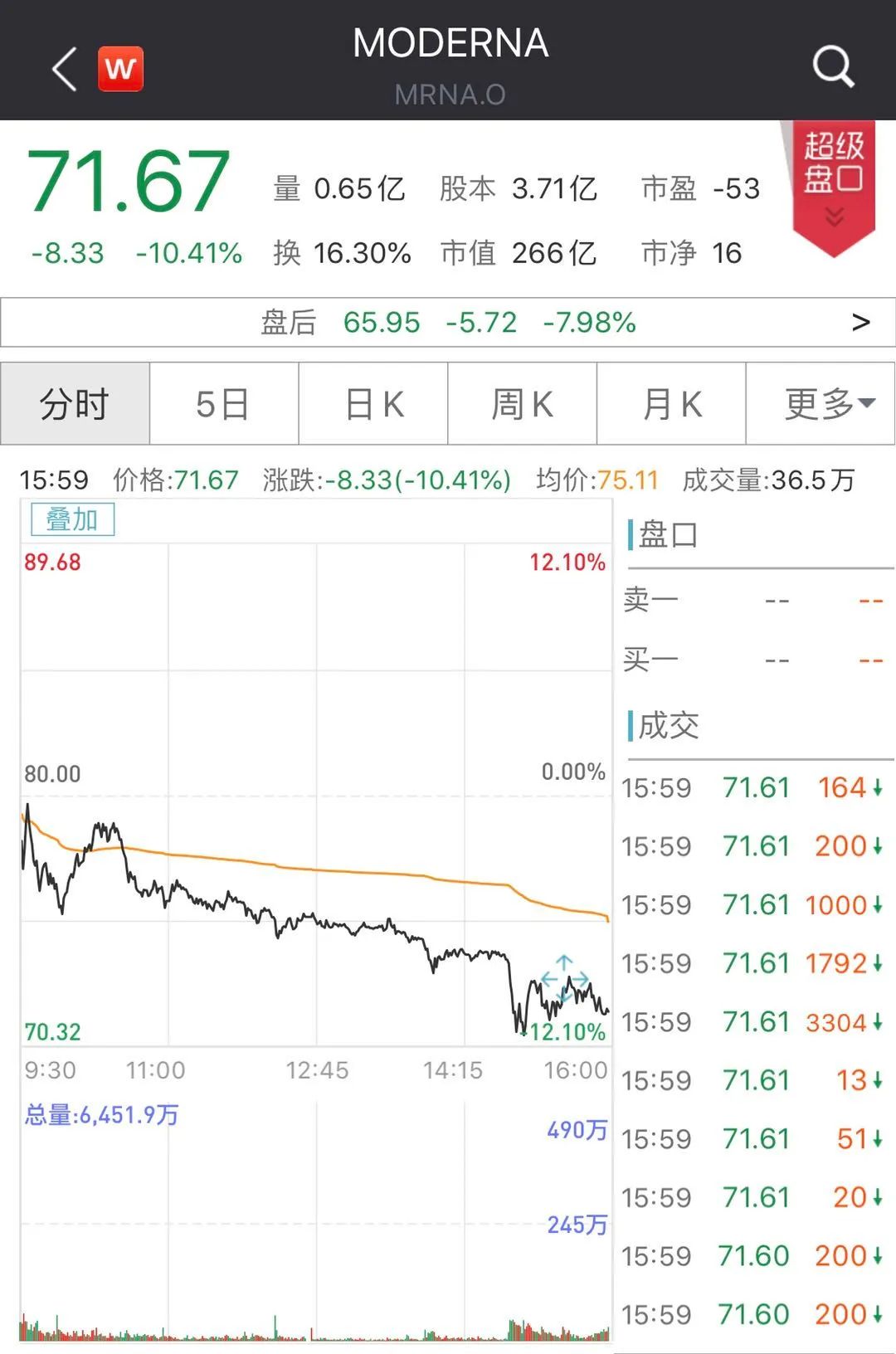 受此消息影响,Moderna股价周二收盘大跌超10%。