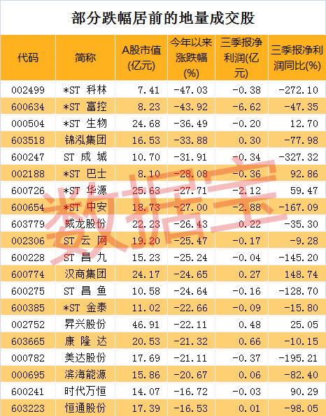 今年以来,一批上市公司因业绩连亏或者担保违规、资金占用等情形被实施退市风险警示或其他风险警示,此外业绩爆雷案例的频发,加上公司实控人或高管被调查,市场避险情绪升温,一批公司因多方面因素遭市场冷遇,出现了地量成交的情况。