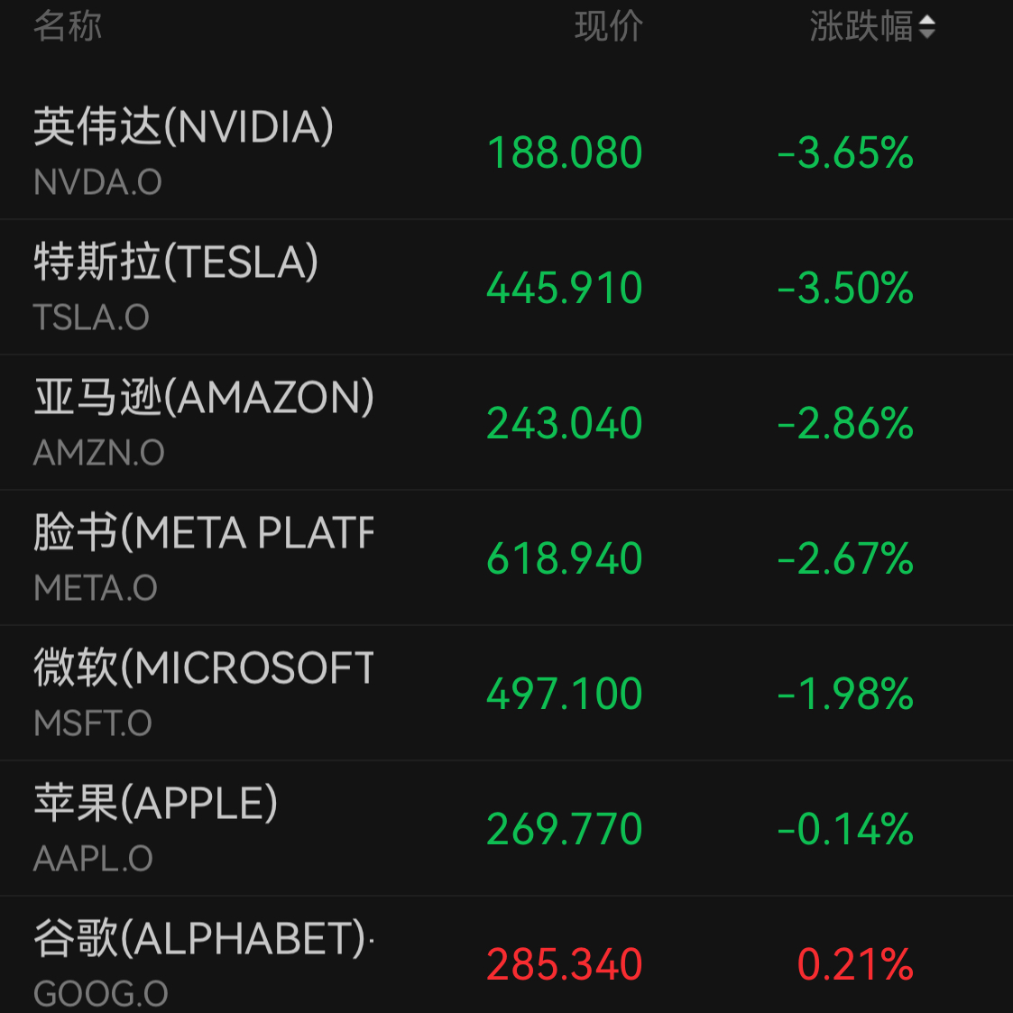 11月7日收盘,美股三大指数集体下跌,科技股成为重灾区。万得美国科技七巨头指数跌1.91%。具体来看,英伟达跌3.65%,特斯拉跌3.5%,亚马逊跌2.86%,Meta跌2.67%,领跌七巨头。另外微软已连续七个交易日下跌,昨夜跌1.98%,创2022年以来最长连跌天数,苹果微跌0.14%。七巨头中仅谷歌微涨0.21%。
