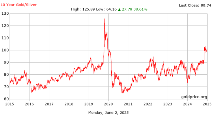 上月,金银比率创下五年新高,飙升至107点,金价也创下每盎司3500美元的历史新高。Schneider表示,她认为2020年的比率峰值与当前的价格走势有一些相似之处。2020年,金银比率从历史高点跌至六年来的低点,一年内回调了51%,这也意味着银价较金价大幅升值。