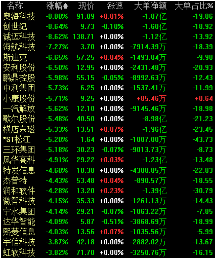 相比之下,虽受大盘拖累,华为概念指数也有下跌,但跌幅显著低于苹果概念指数。事实上,华为概念股与苹果概念股中有不少是相同的公司,同属于苹果、华为概念股的海航科技、安利股份、鹏鼎控股等跌幅均超过5%;而华为概念板块的赛摩智能、天晟新材、上海天洋今日均逆势大涨。