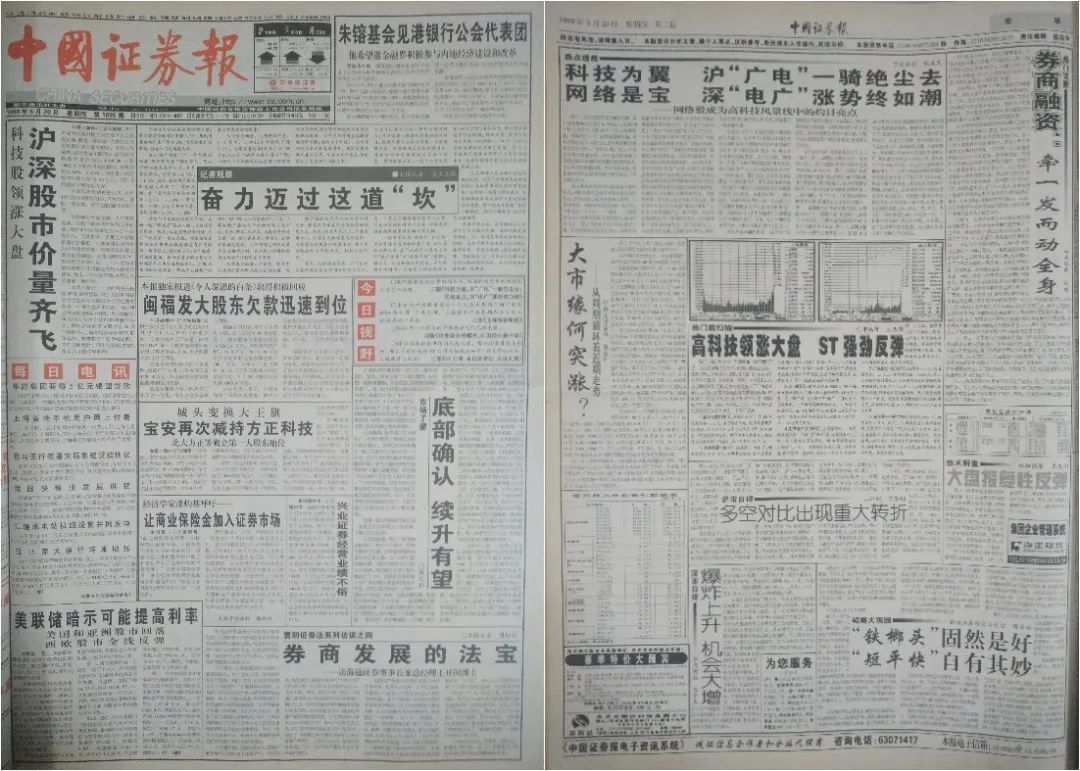 不过,1999年5月19日星期三,A股在网络股的带领下一扫低迷。上证综指、深证成指当天分别上涨4.64%和5.03%。