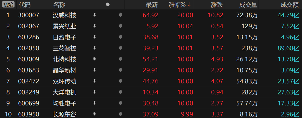 马斯克豪掷近10亿美元增持的消息,不仅驱动特斯拉股价大涨,也催化了大洋彼岸A股市场的产业链公司。今日,机器人概念股集体大涨。截至收盘,三花智控、双环传动、汉威科技等十余股涨停。