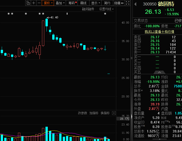 德固特重组告吹,股价“一”字跌停