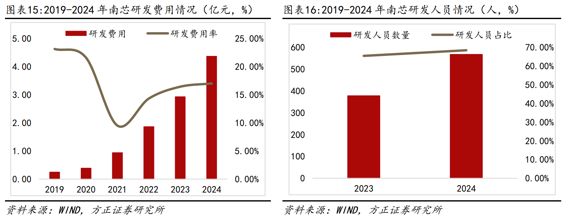 国内重点城市+海内外双重布局,昇生微纳入合并报表范围。截至2024年末,南芯科技合计拥有10家控股子公司,其中9家为全资子公司。北京南芯定位为母公司华北地区研发/销售中心、新加坡南芯定位为海外销售中心。此外,公司拟使用自有资金或自筹资金1.6亿元价格受让昇生微100%股权。本次交易完成后,公司将直接持有昇生微100%的股权,昇生微将成为公司的全资子公司。截至2025年4月25日,公司已将昇生微纳入合并报表范围。